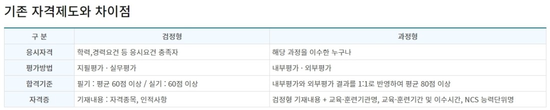 1국가직무능력표준(NCS : National Competency Standards)으로 설계된 교육·훈련과정을 체계적으로 이수하고 내·외부 평가를 거쳐 취득하는 국가기술자격입니다.
